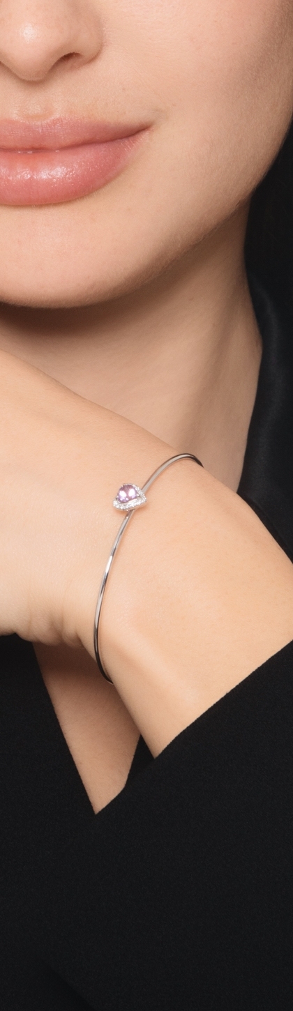 Bracciale rigido in oro bianco 750 con ametista a cuore e diamanti