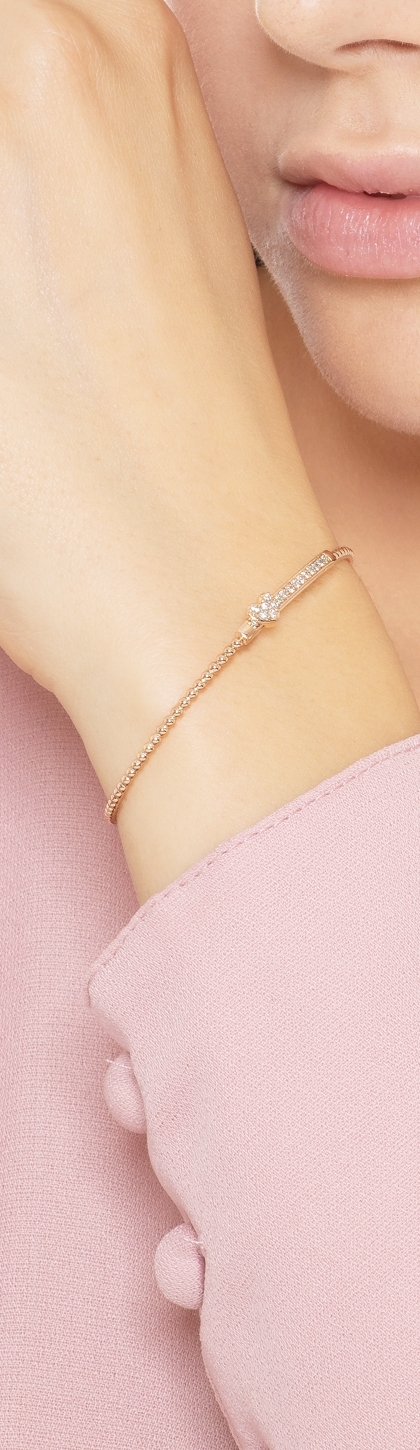 Bracciale rigido in oro rosa 18k con barretta e cuore in diamanti