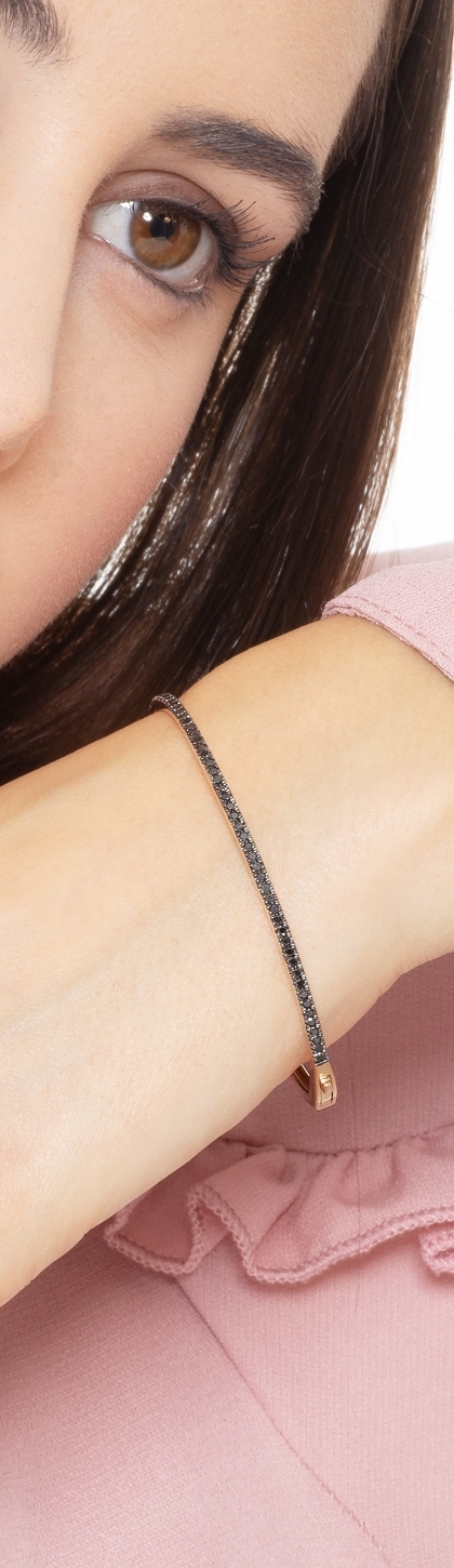 Bracciale rigido in oro rosa 18k con diamanti neri
