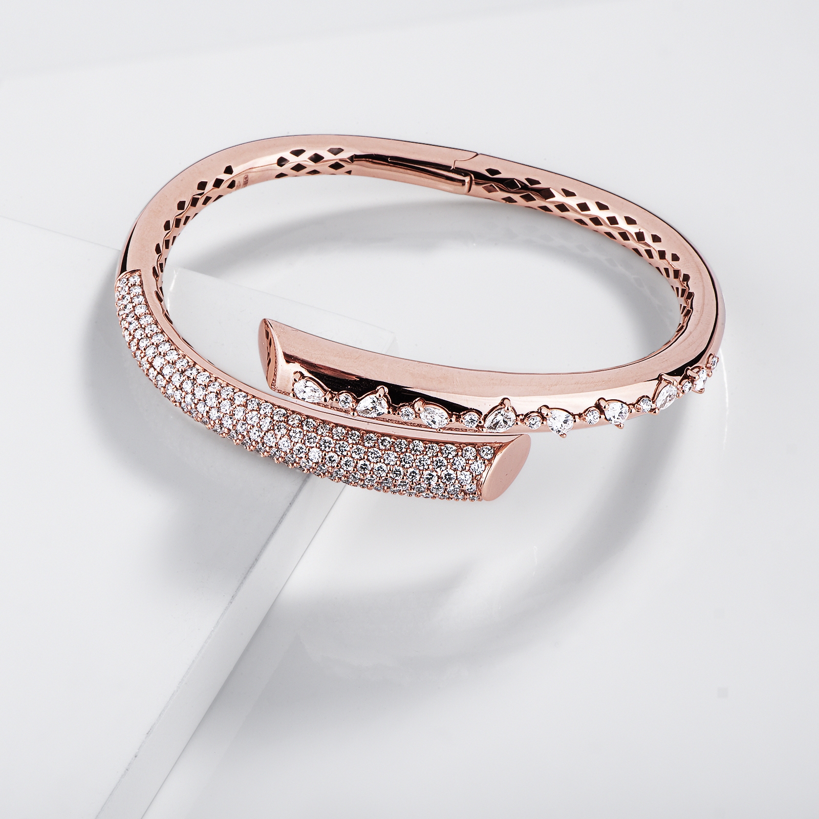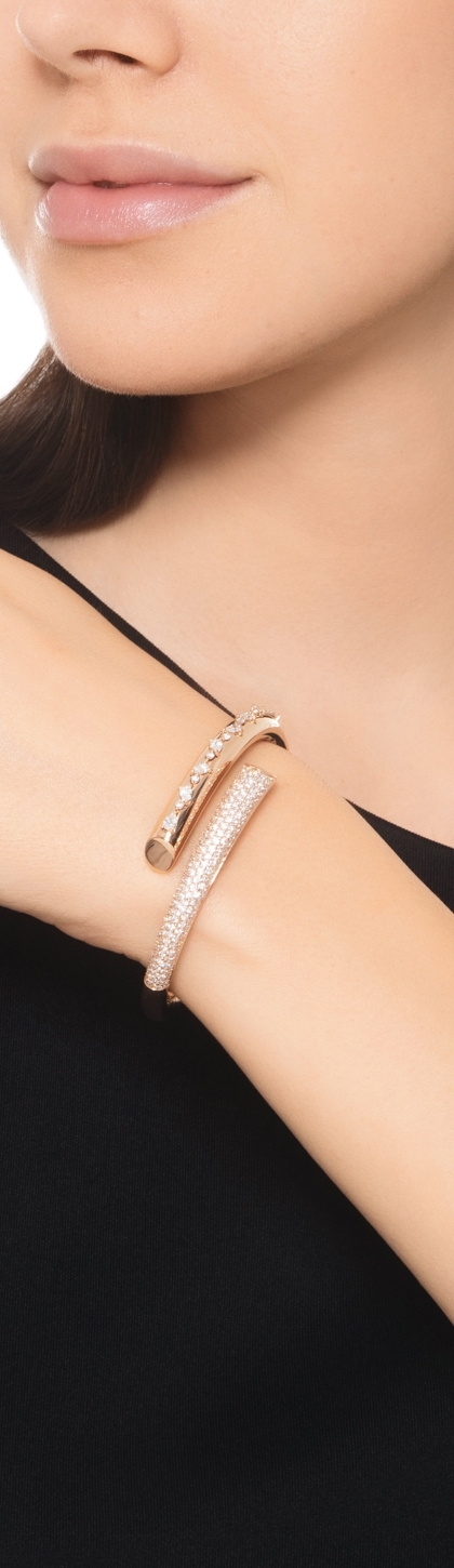 Bracciale semi rigido design in oro rosa 750 con diamanti