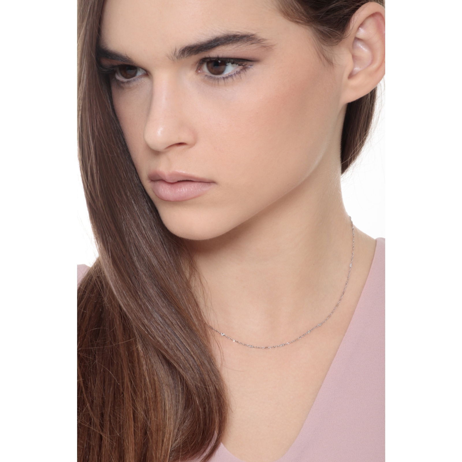 Catena in oro bianco 18k con inserti diamantati, cm 45.