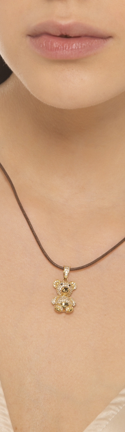 Ciondolo orsetto in oro giallo 18k con zirconi