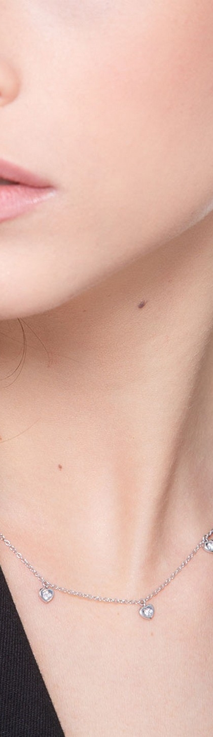 Collana con 9 pendenti a cuore in oro bianco 18k con diamanti