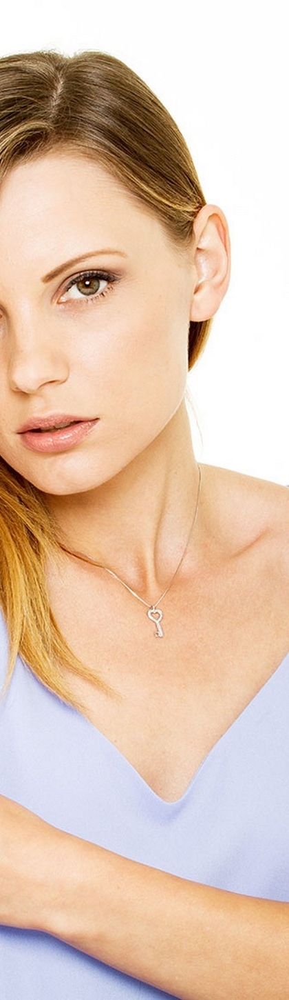 Collana in oro bianco 18k a forma di chiave con diamanti taglio brillante colore G e purezza Vs.