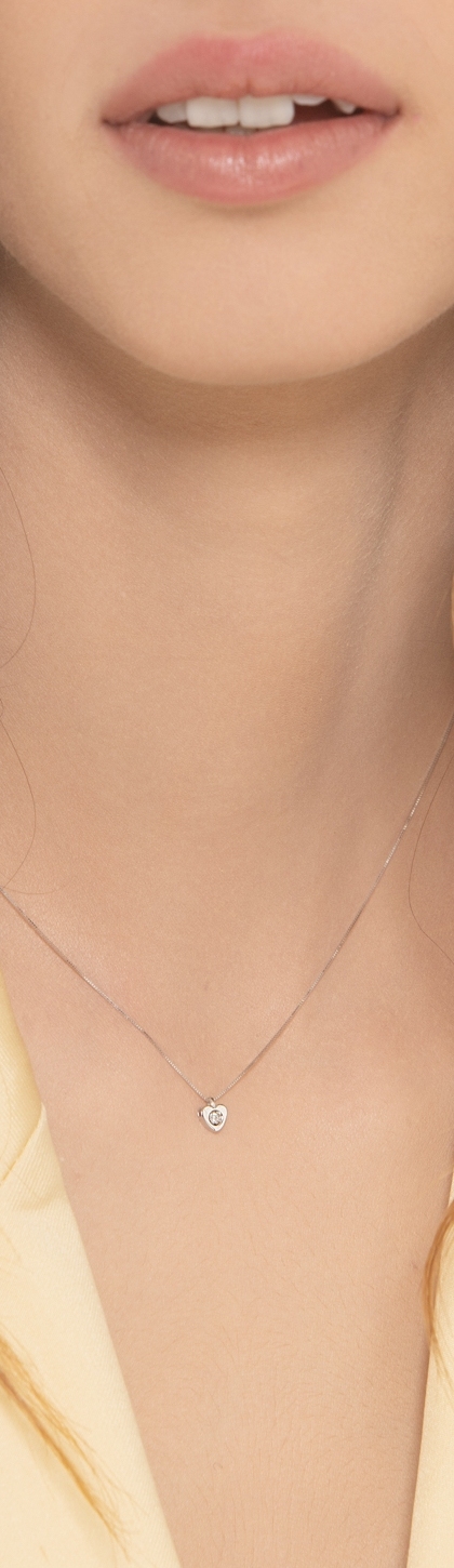 Collana con ciondolo a cuore in oro bianco 18k e diamante, circa 5x6 mm