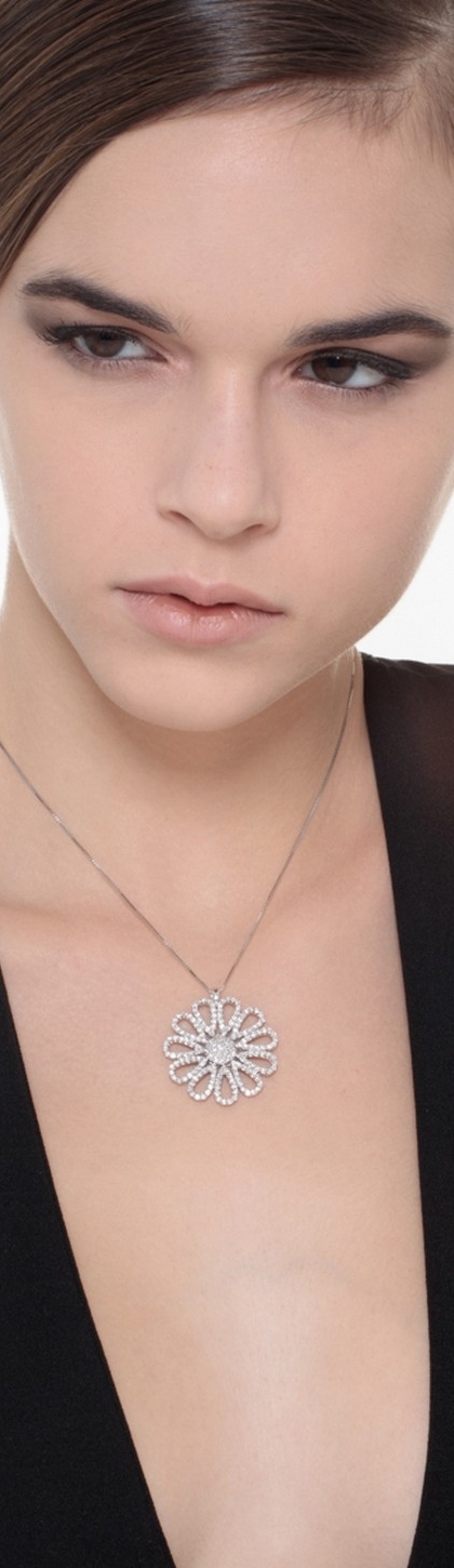 Collana con fiore in oro bianco 18k con diamanti