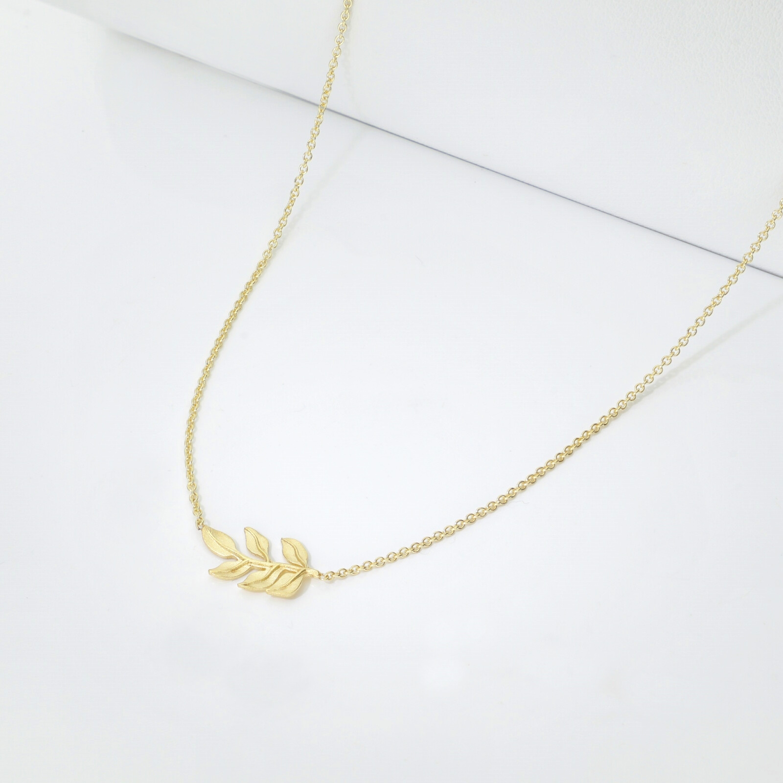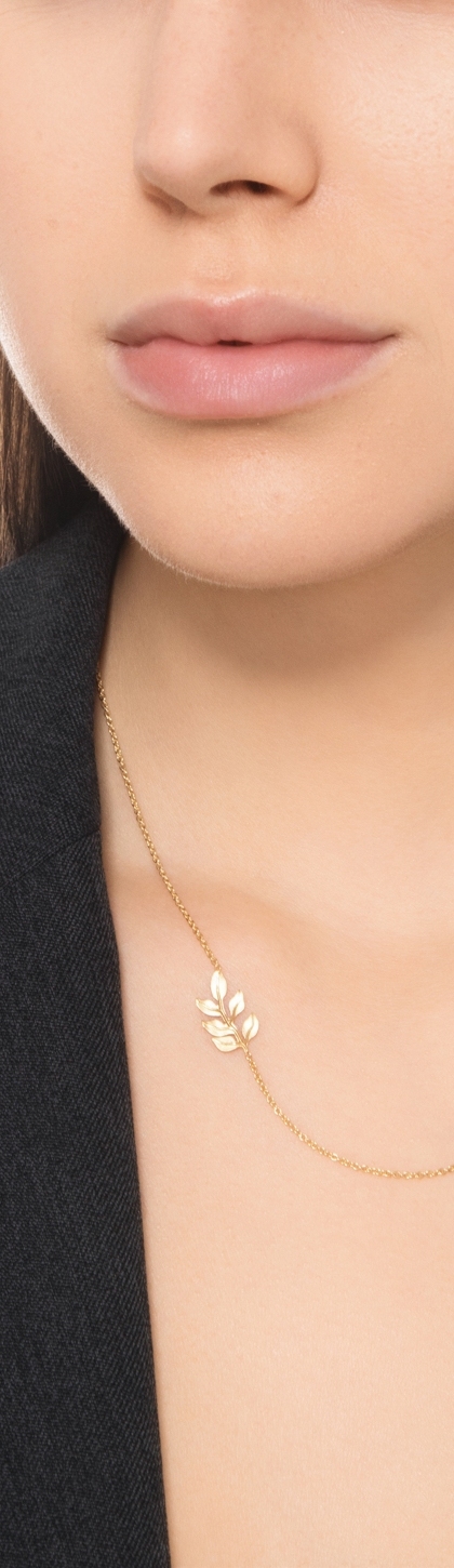 Collana con foglia lucida in oro giallo 750