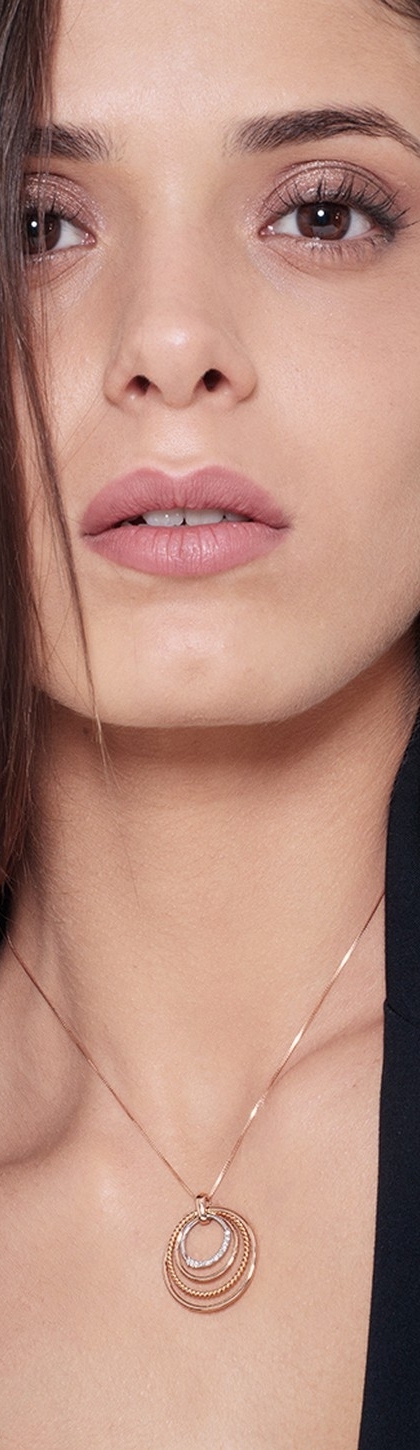 Collana con pendente a cerchi in oro bianco e rosa 18k e diamanti