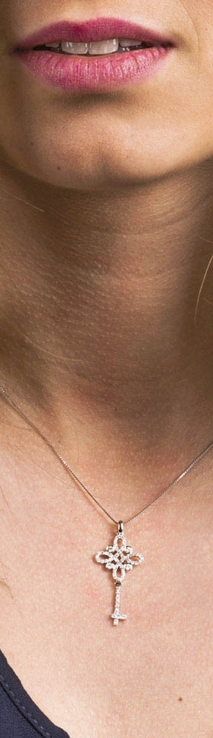 Collana con pendente a chiave in oro bianco 18k con diamanti.