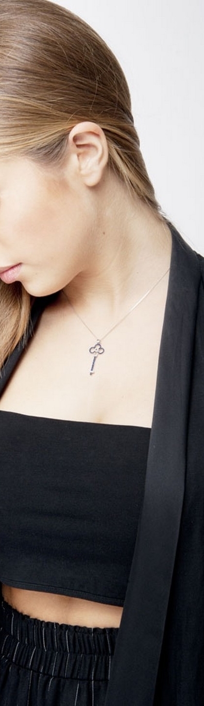 Collana con pendente a chiave in oro bianco 18k con zaffiri blu e diamanti