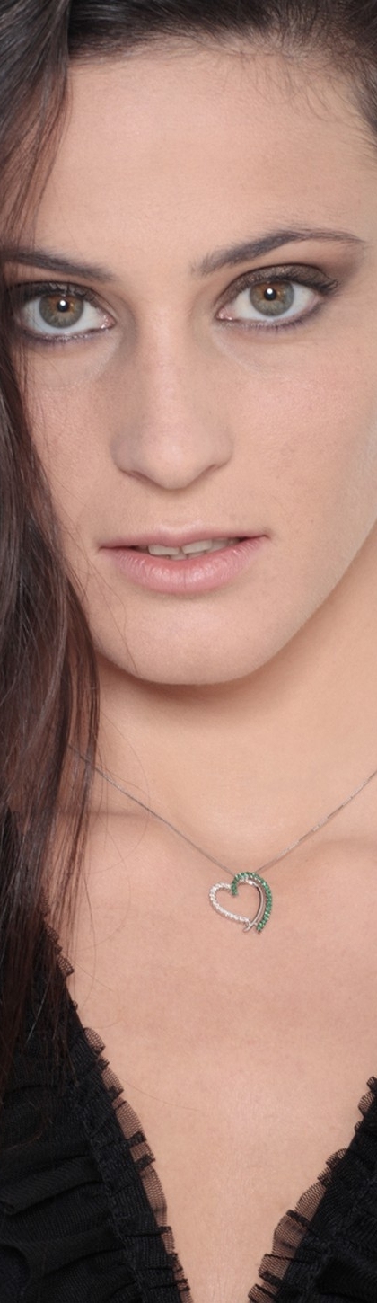 Collana con pendente a cuore in oro bianco 18k con Diamanti e Smeraldi.