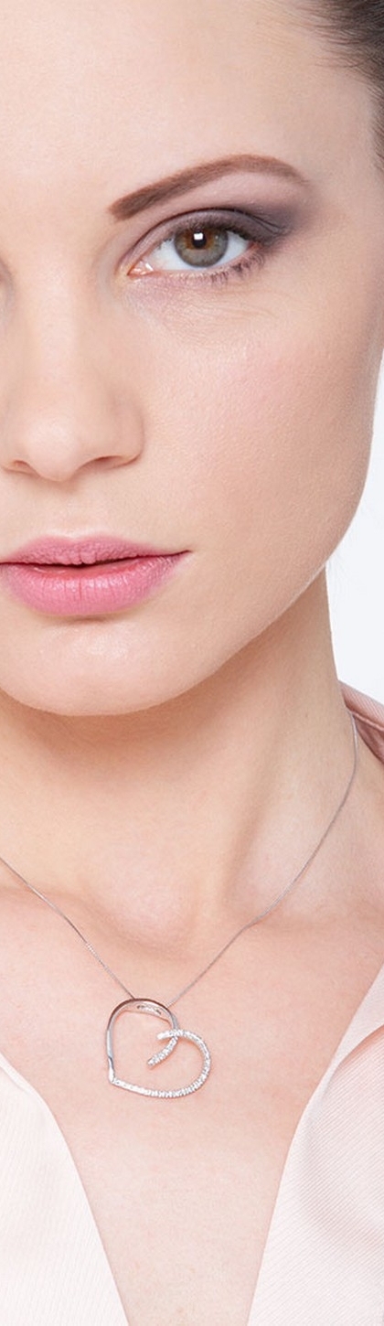 Collana con pendente a cuore in oro bianco 18k con diamanti su metà contorno