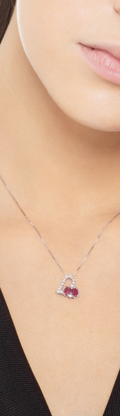 Collana con pendente a cuore in oro bianco 18k con rubini e diamanti
