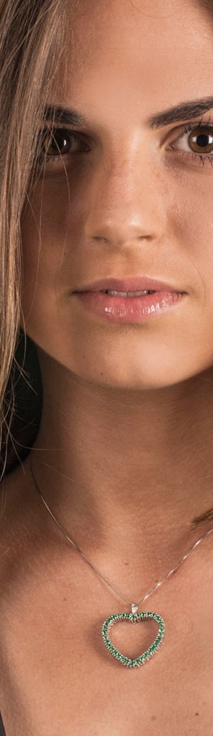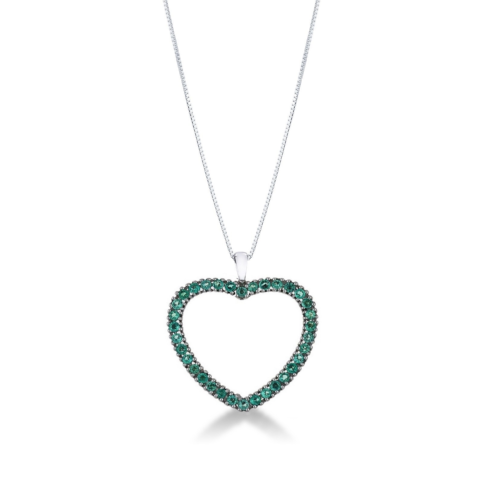 Collana con pendente a cuore in oro bianco 750 con smeraldi e diamanti