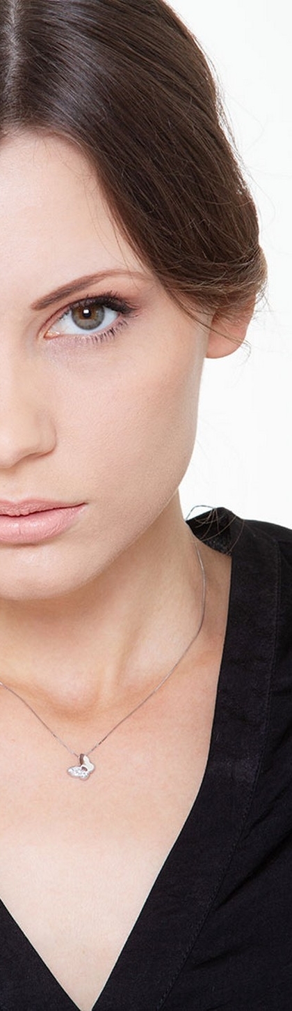 Collana con pendente a farfalla in oro bianco 18k e diamanti