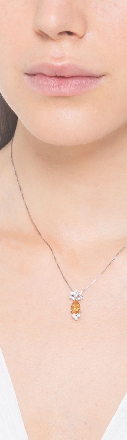 Collana con pendente a goccia in oro bianco 18k con citrino e diamanti