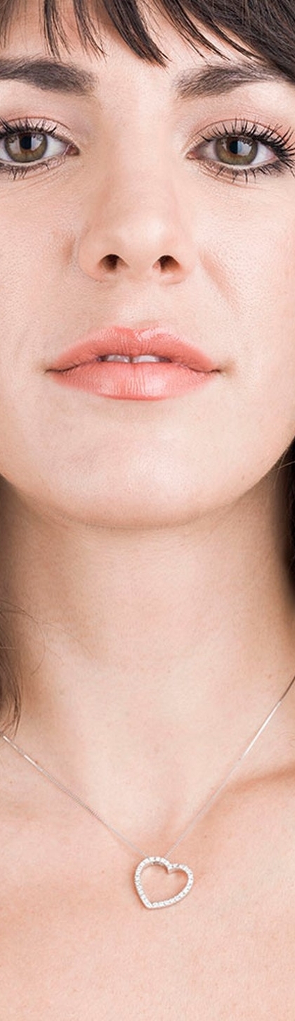 Collana con pendente aperto a cuore in oro bianco 18k con diamanti a contorno