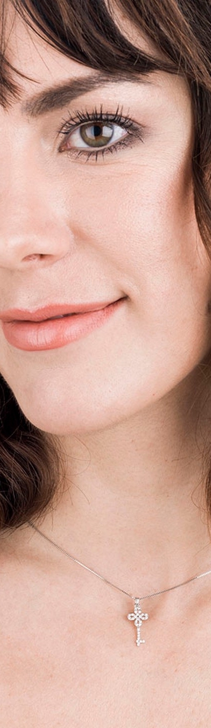 Collana con pendente chiave in oro bianco 18k con diamanti.