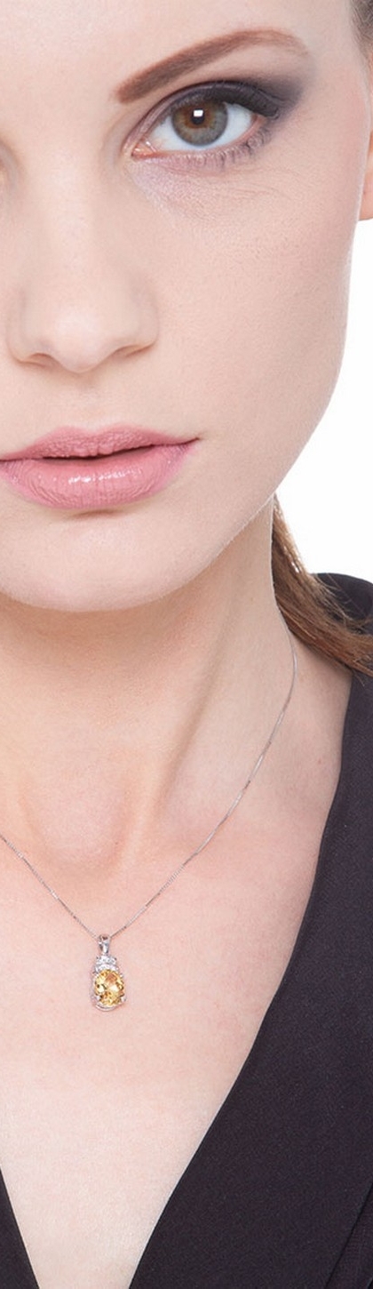 Collana con pendente in oro bianco 18k con citrino e diamante