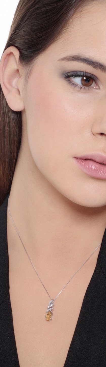 Collana con pendente in oro bianco 18k con citrino e diamanti su spirale