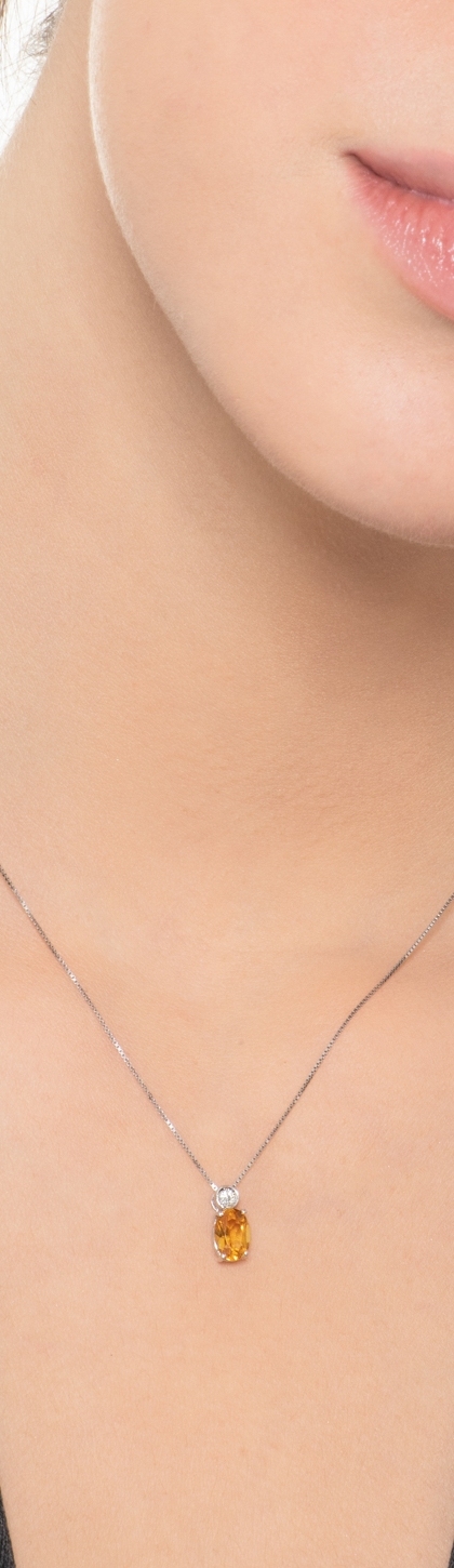 Collana con pendente in oro bianco 18k con diamante e citrino