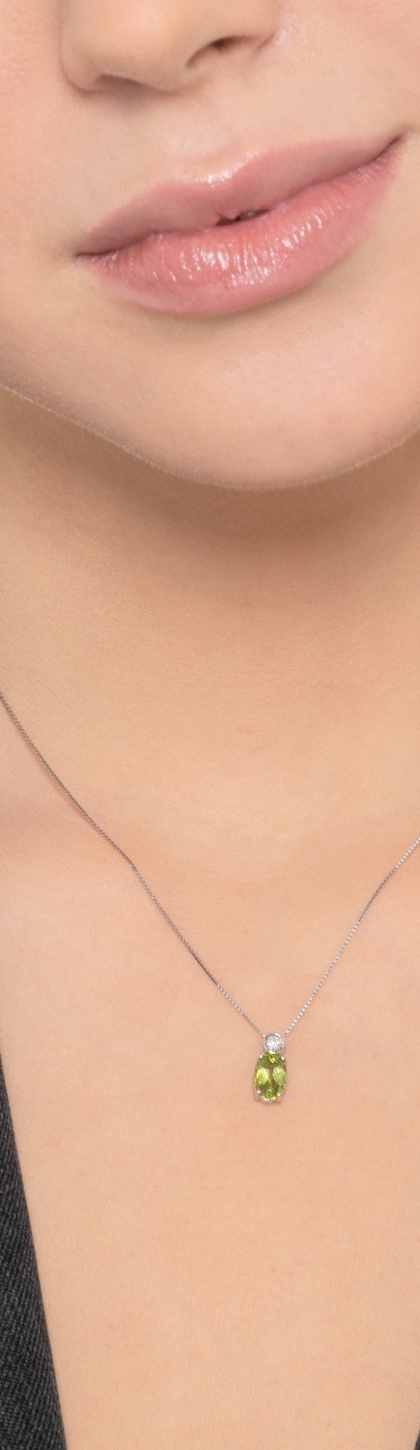 Collana con pendente in oro bianco 18k con diamante e peridoto