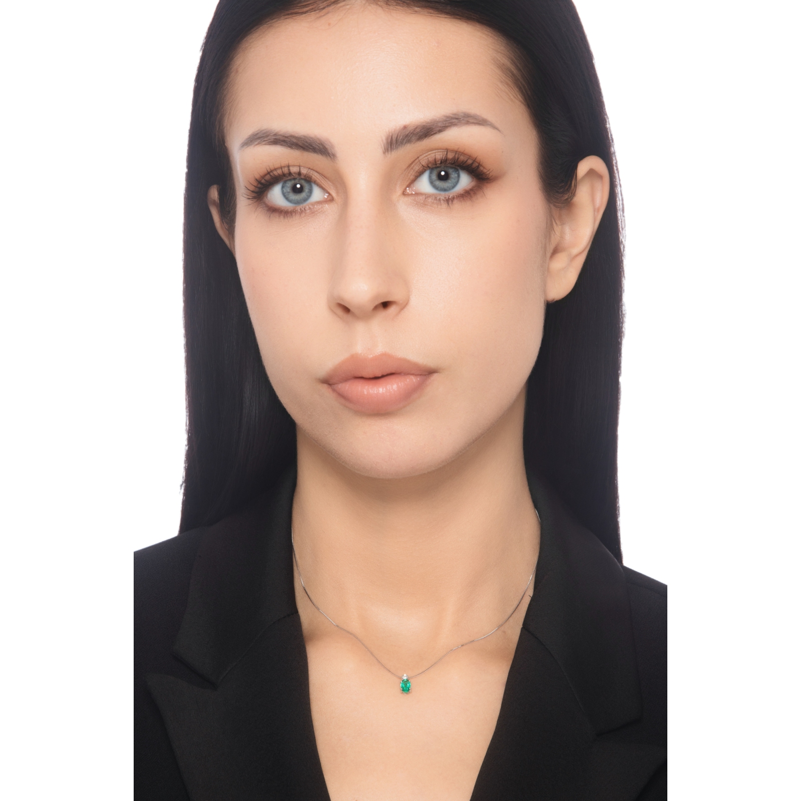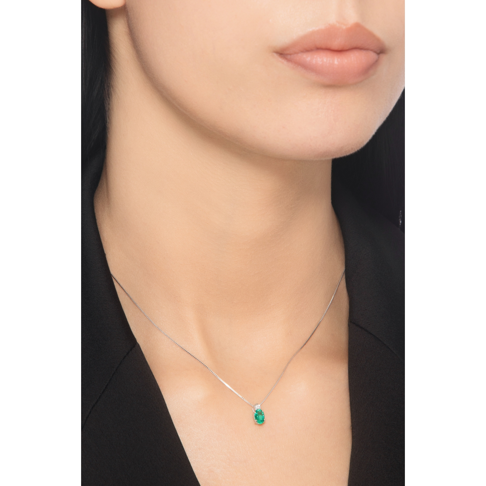 Collana con pendente in oro bianco 18k con diamante e smeraldo ovale