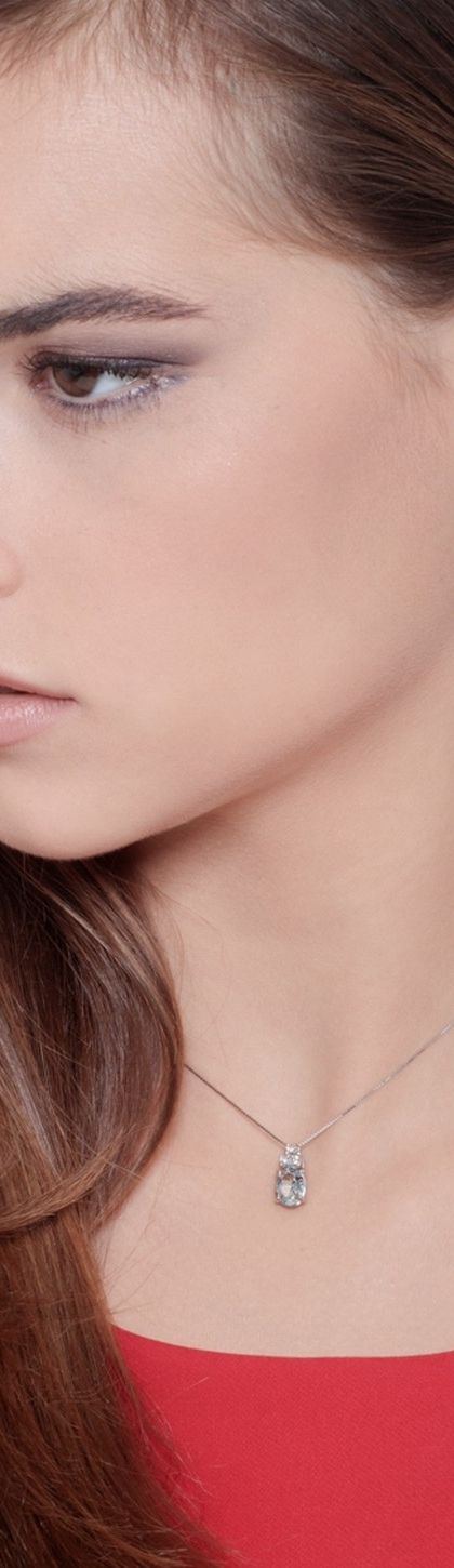 Collana con pendente in oro bianco 18k con diamanti e acquamarina ovale