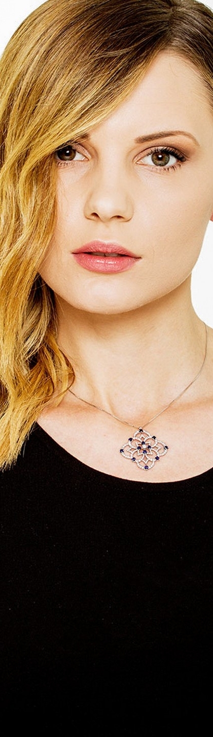 Collana con pendente rosone in oro bianco 18k con zaffiri blu e diamanti