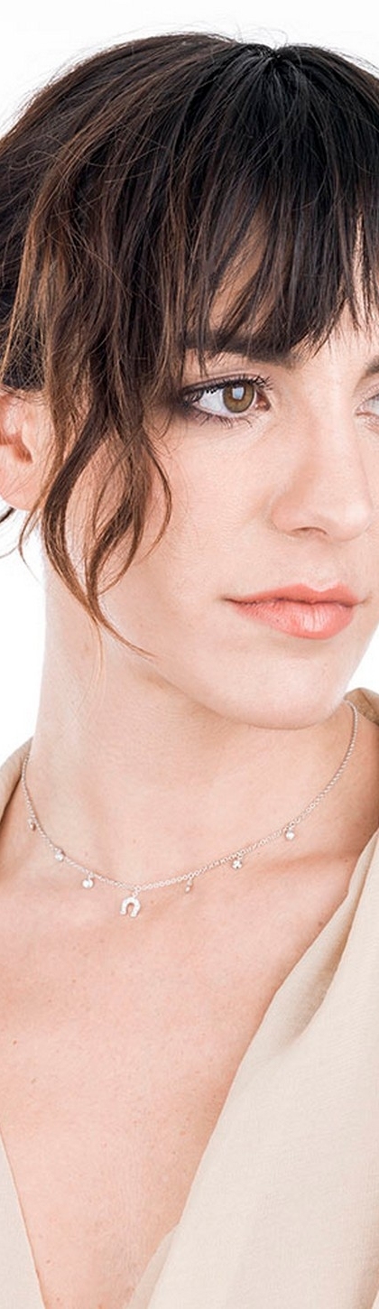 Collana con pendenti ferro di cavallo e punto luce in oro bianco 18k con diamanti
