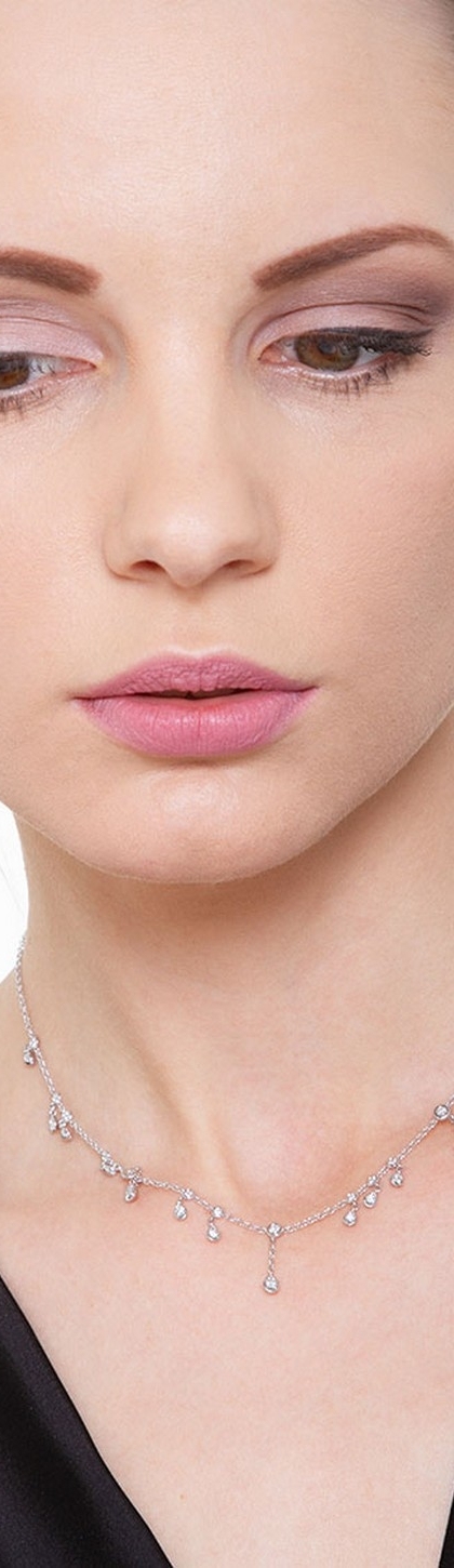 Collana con pendenti in oro bianco 18k con diamanti.