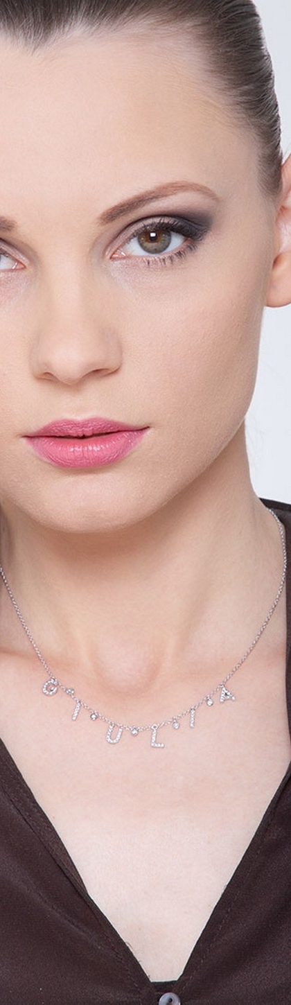 Collana con scritta personalizzabile in oro Bianco 18k e diamanti, GIULIA