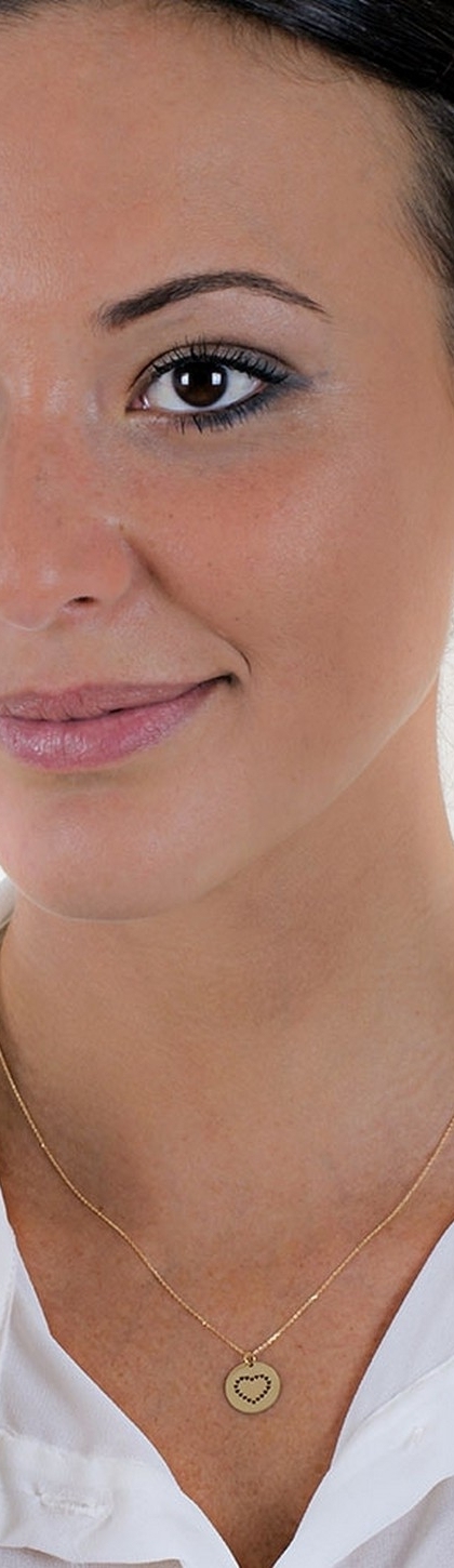 Collana con tondo piatto e cuore traforato in oro giallo 18k.