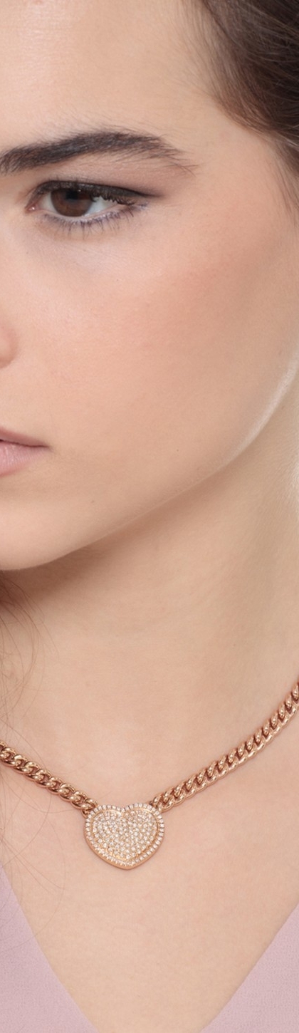Collana groumette in oro rosa 18k con pendente a cuore di circa 24 mm in diamanti