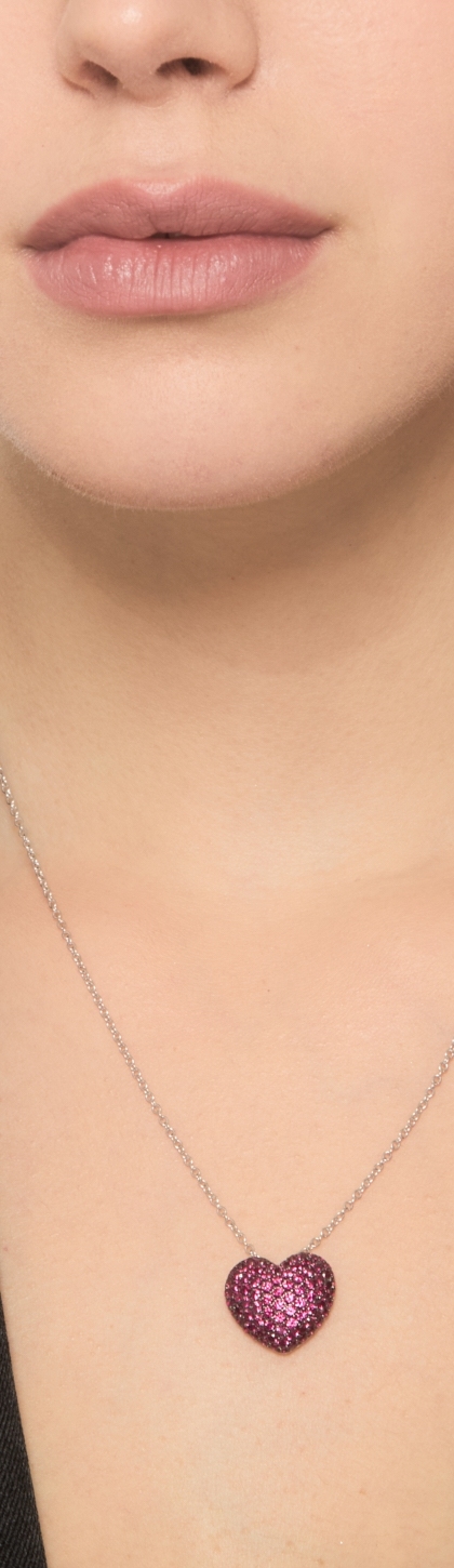 Collana in oro 750 con ciondolo cuore pavè in rubini