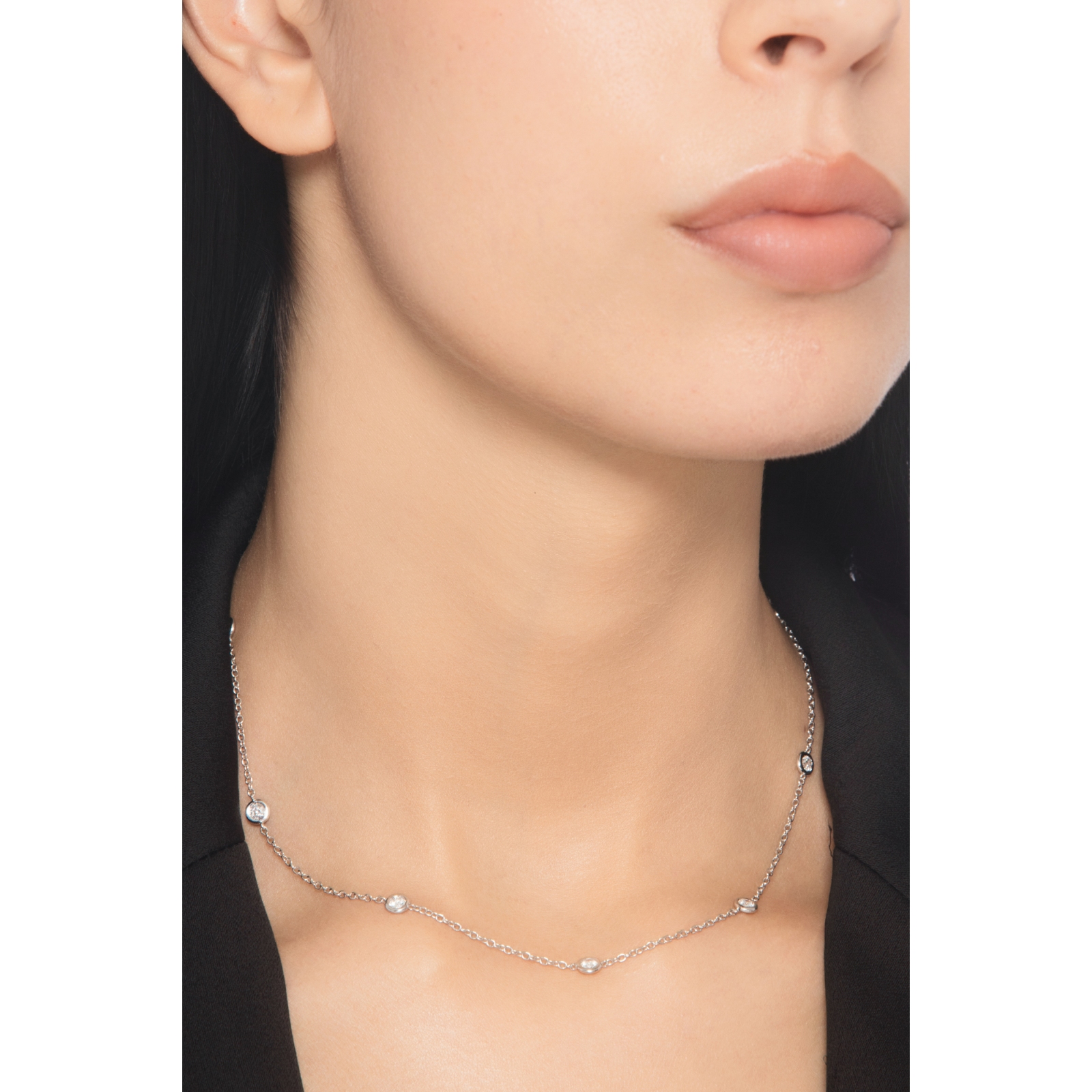 Collana in oro bianco 18k con 9 diamanti, cm 40