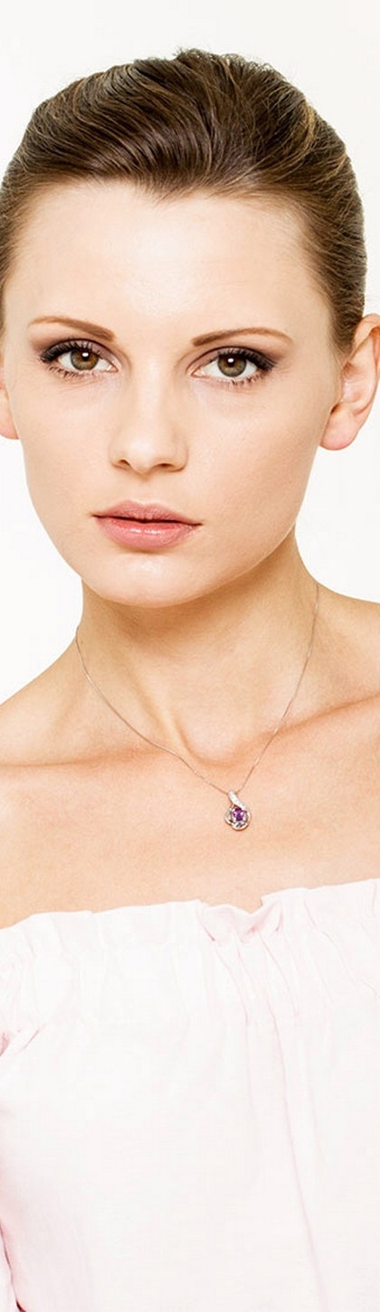 Collana da Donna in Oro bianco 18k, con incastonata Ametista taglio Ovale e diamanti taglio brillante colore G e purezza Vs.