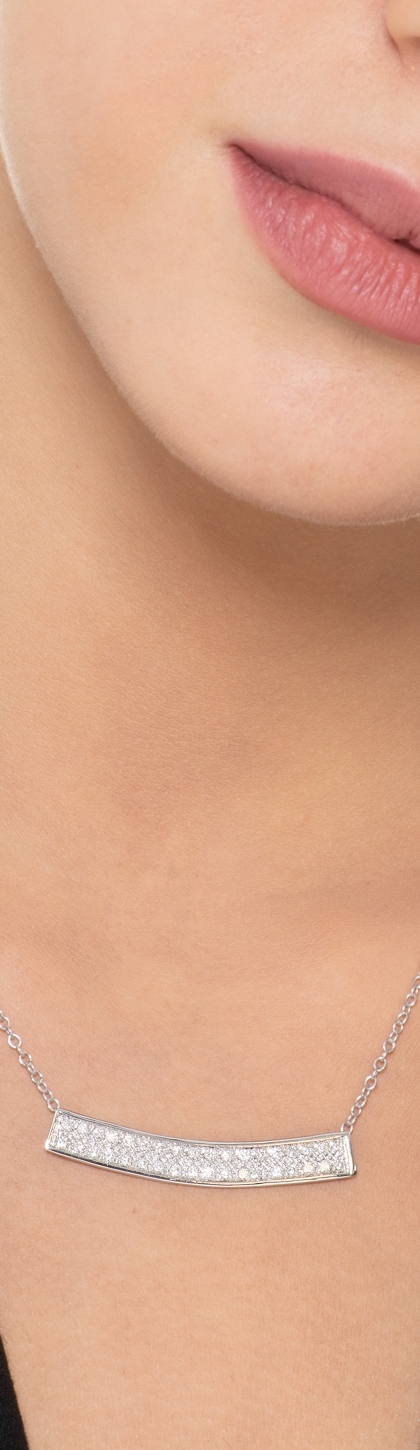 Collana in oro bianco 18k con barretta incastonata con diamanti