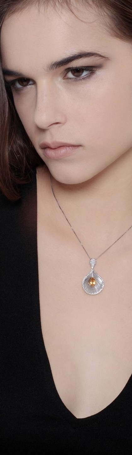 Collana in oro bianco 18k con ciondolo a Calle in Diamanti e citrino