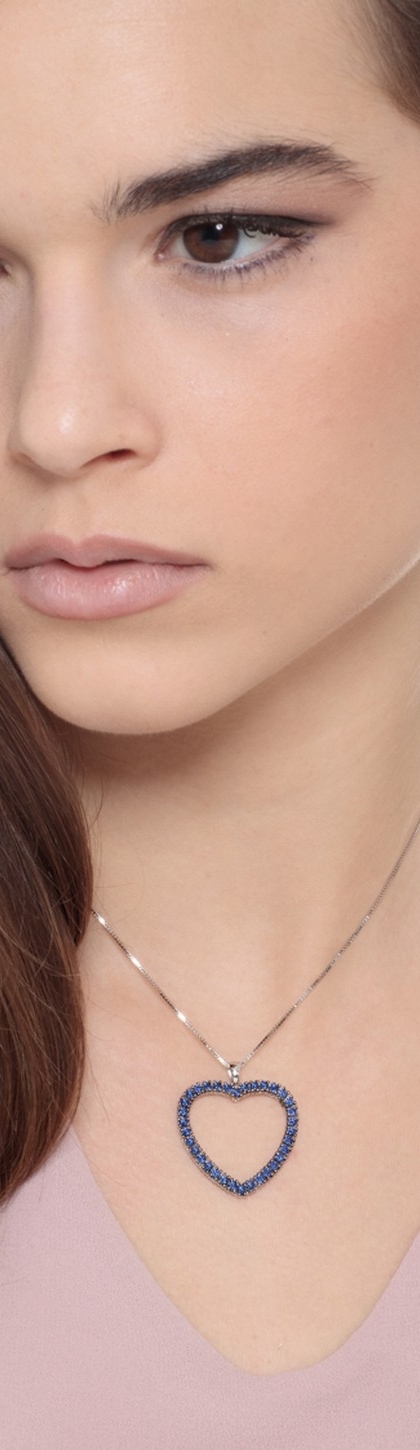 Collana in oro bianco 18k con ciondolo a cuore di zaffiri blu