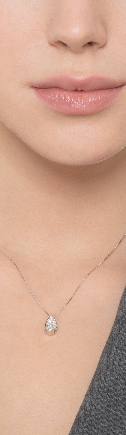Collana in oro bianco 18k con ciondolo a goccia e diamanti