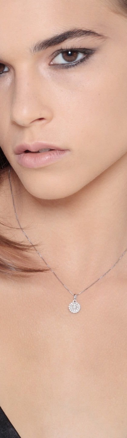 Collana in oro bianco 18k con ciondolo in diamanti, diametro 9 mm