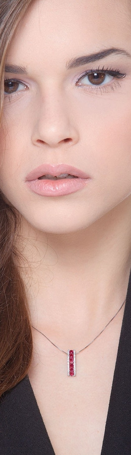 Collana in oro bianco 18k con ciondolo in rubini e diamanti