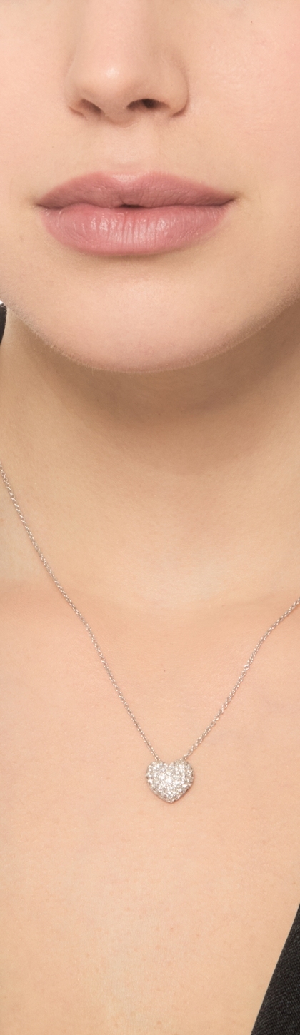 Collana in oro bianco 18k con ciondolo pavè cuore in diamanti