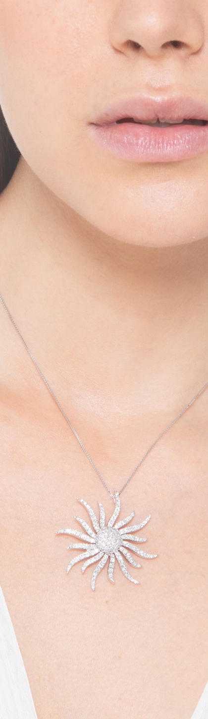 Collana in oro bianco 18k con ciondolo sole in diamanti