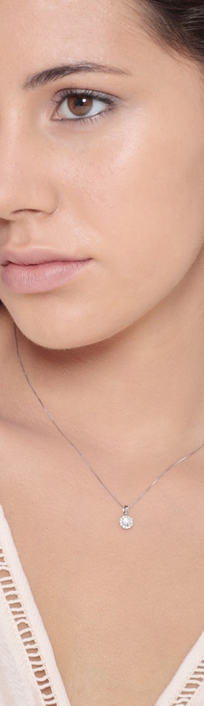 Collana in oro bianco 18k con ciondolo tondo in diamanti.