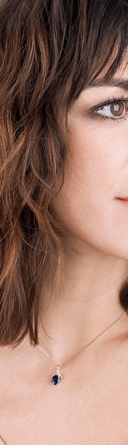 Collana in oro bianco 18k con diamanti e zaffiro blu ovale