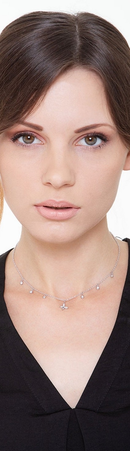 Collana in oro bianco 18k con farfalla e diamanti.