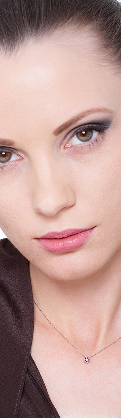 Collana in oro bianco 18k con fiore in rubini e diamante al centro