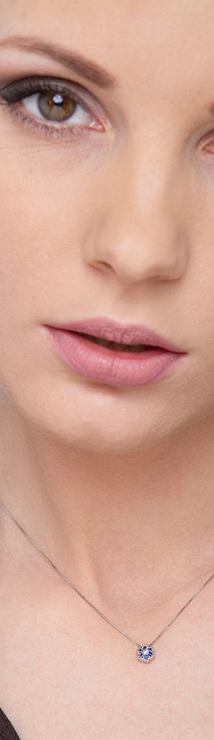 Collana in oro bianco 18k con fiore in zaffiri blu e diamante, 6 mm